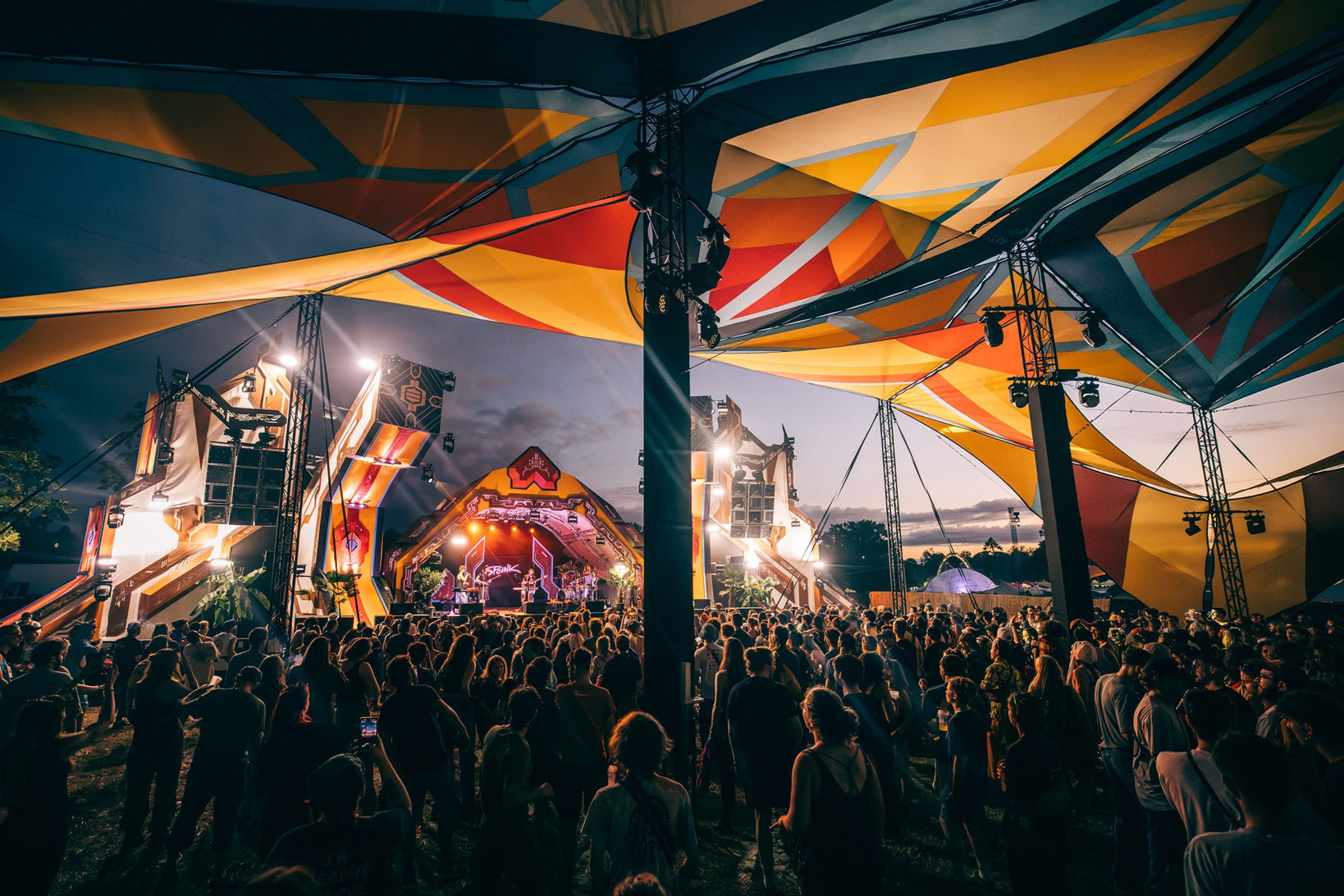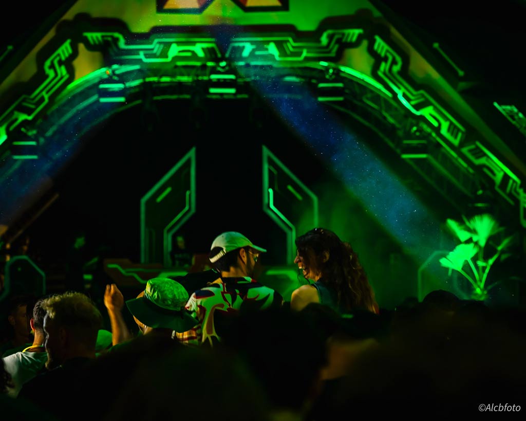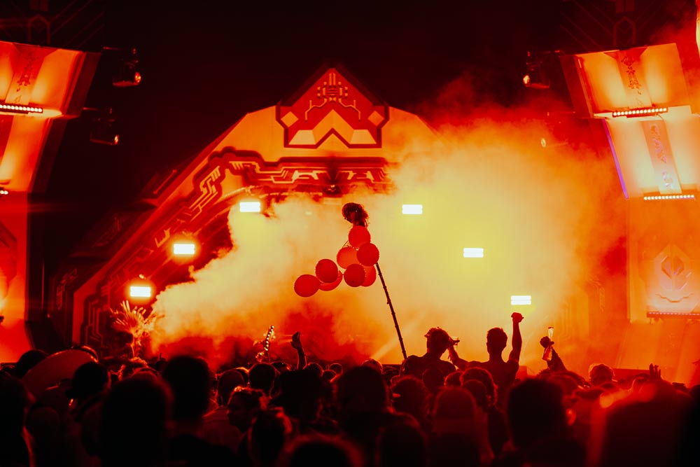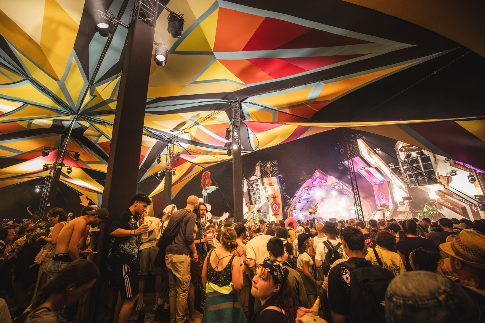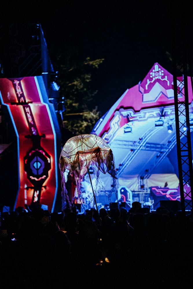 Working closely with the festival team and Locus Pocus Deco on the canopy design, we created a vibrant and immersive environment driven by a network of addressable LEDs and a lighting setup tailored to the energy of the dancefloor.