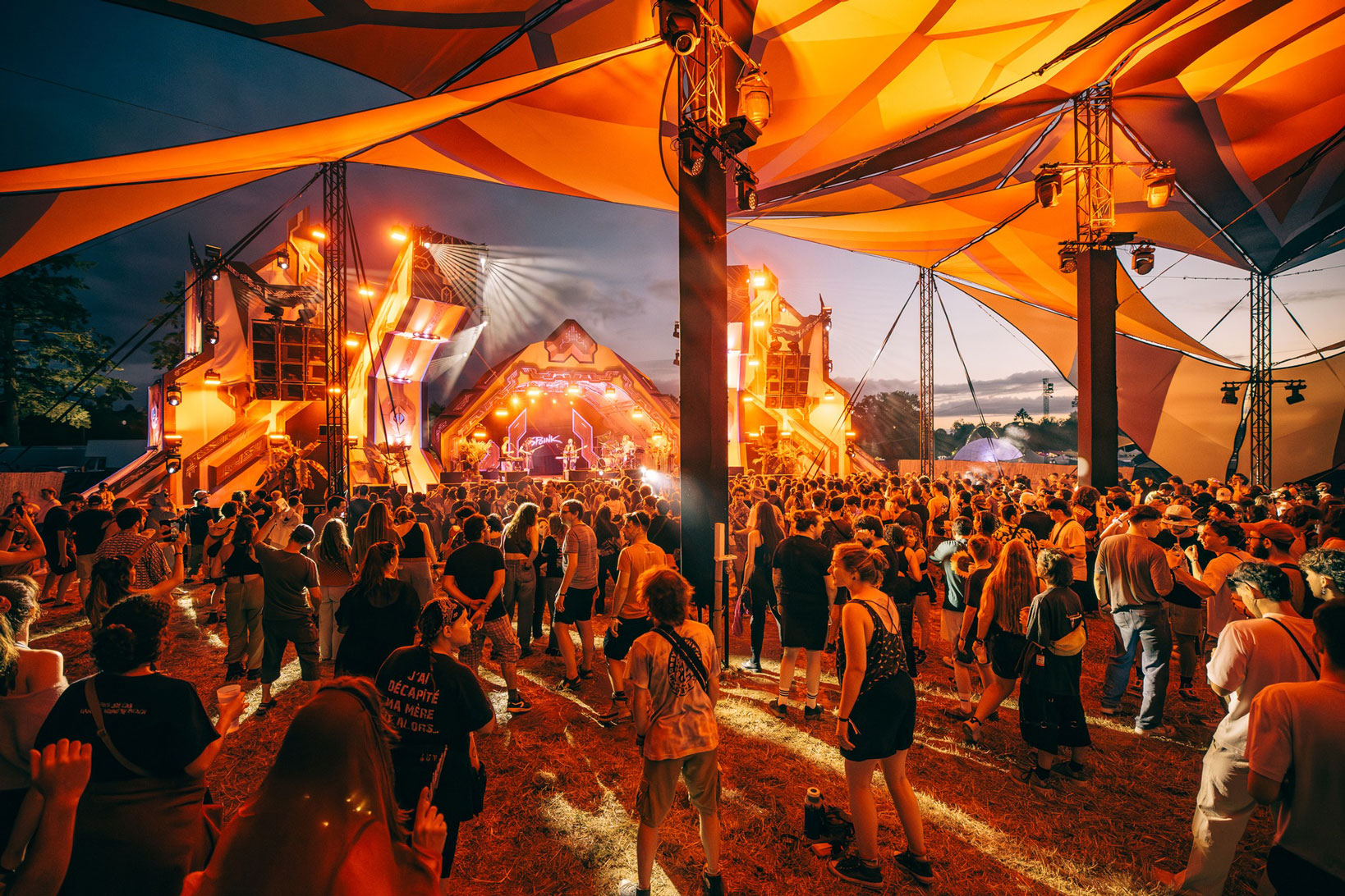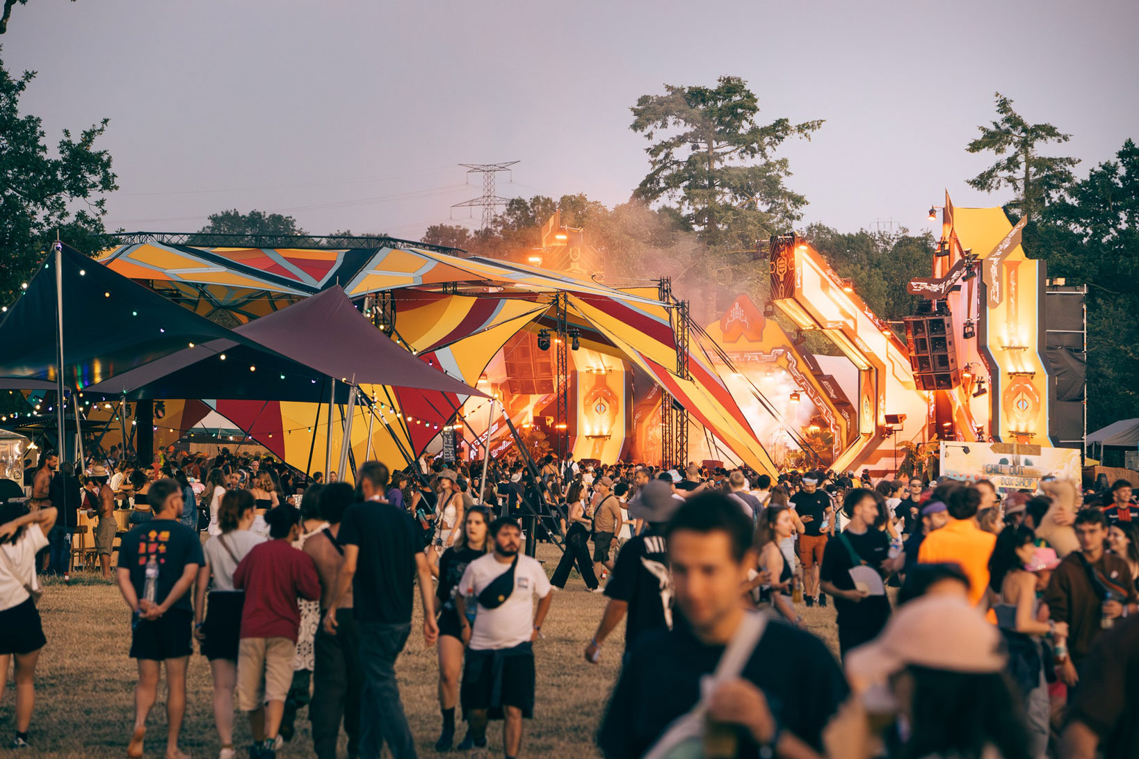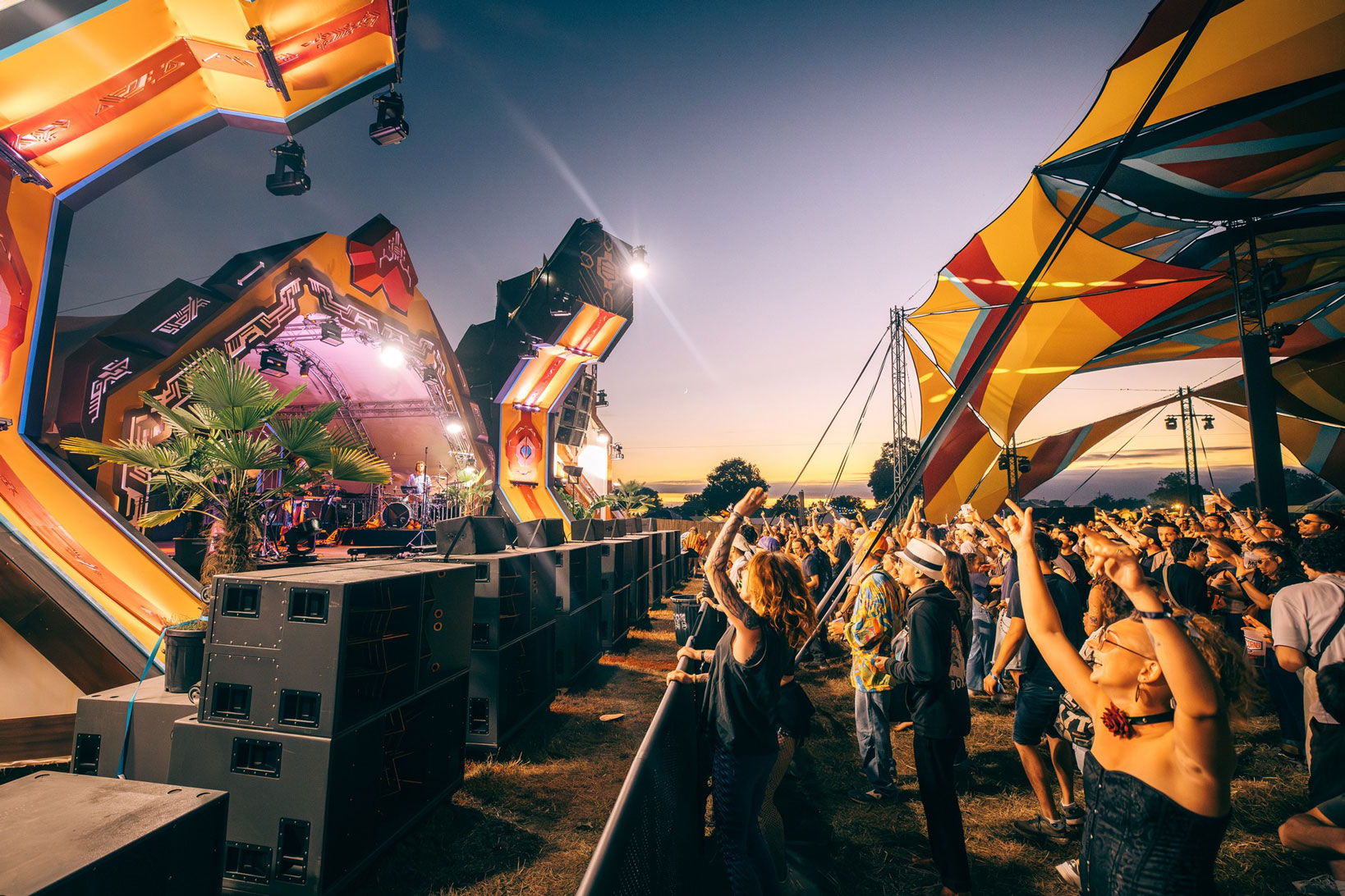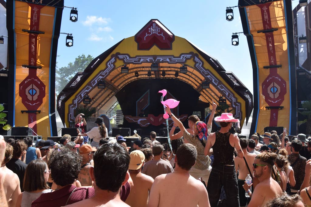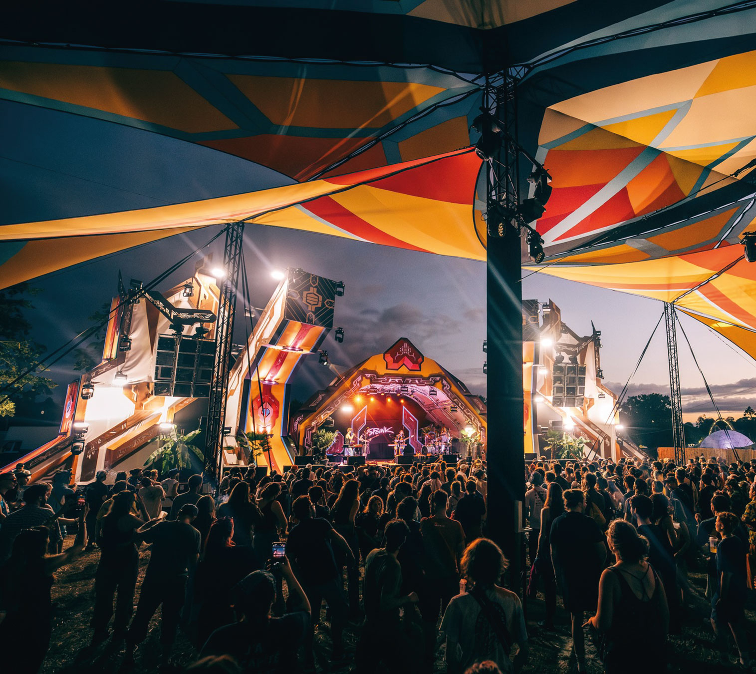 Working closely with the festival team and Locus Pocus Deco on the canopy design, we created a vibrant and immersive environment driven by a network of addressable LEDs and a lighting setup tailored to the energy of the dancefloor.